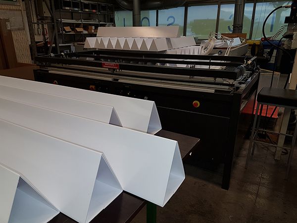 Notre département de pliage est spécialisé dans le pliage des panneaux plastiques thermoplastiques, dont l’acrylate et le polycarbonate. Le pliage les rend utiles pour une diversité d’applications, par exemple des couvercles de protection, des comptoirs pour le secteur alimentaire, etc. Nous utilisons 2 méthodes pour plier des panneaux thermoplastiques: